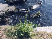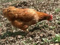 ひとまず金鱗湖方面から外れて右に曲がると軍鶏がエサを探して川辺の草地を歩いている。