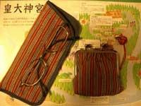 私が立ち寄ったのは、おはらい町通り沿いの『もめんや藍』。松坂もめんの特徴である縞柄の藍染の眼鏡ケースと柄が同じ2口のがま口財布を購入。2口あると紙幣と小銭が分けられるのでとても便利。財布に付けてある鈴は『伊勢くみ紐 平井』で買った。