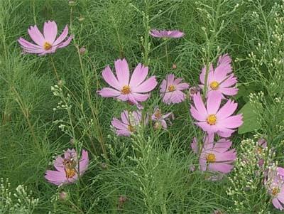 住まいの横を通る道沿いにはコスモスが咲き始めています。