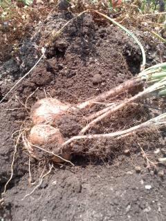 ゴールデンウィークも最終日、サフランの球根を掘り起こしました。9月に植えた球根1個から大きな球根が2個と中小粒が幾つか採れたので、秋の植え付け作業は倍以上になります。それを考えると嬉しさには微妙なものがあります。