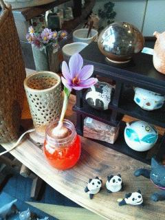 益子焼と下野のてしごと「かうり」さんにお届けしたサフランに見事な大輪の花が咲きました。