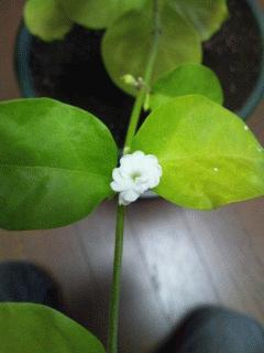 寒さに弱いので、室内で冬を越したアラビアン・ジャスミンに白い小さな花が咲きました。