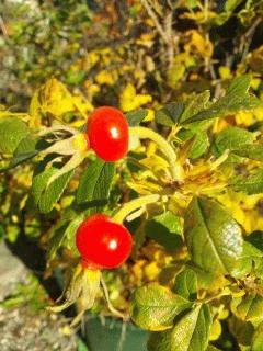 鮮やかな橙色の実が太陽に照らされて輝いてます。