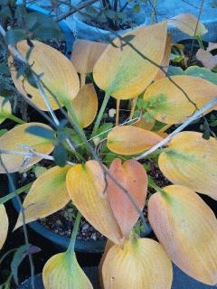 11月にはいってからの冷え込みでギボウシの葉も黄色くなり、冬の風情を演出しています。