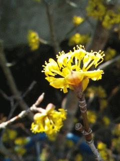 ミズキ科ミズキ属のサンシュユ、一気に開花して木一面に鮮やかな黄色の花を咲かせました。