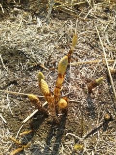 つくしはスギナの胞子茎なので、つくしが枯れた後には勢いよくスギナが芽を出してきます。