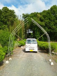 写真では軽トラが小さく、すごく大きなアーチに見えますが、アーチ部分は50cm地中に埋め込むので、さほど大きくはありません。
