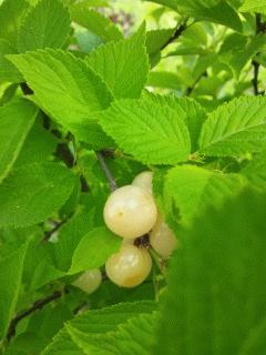 昨年は白実ユスラウメの実成りが少なかったのですが、今年はかなり成ってます。