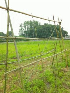 ヘチマ、ハロウィンカボチャ、フレンチメロンの苗も順調に成長しているので、早く棚を作らなければなりません。