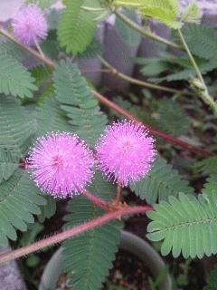 こぼれ種で自生してきたおじぎ草、眠りから覚めて朝に彩りを添えてくれています。