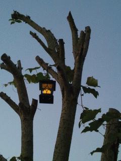 そして枝を伐採したキンモクセイに取り付けたランタンに灯りが燈り始めます。