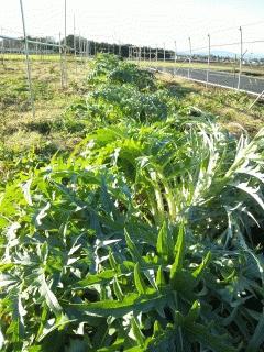 畑を取得した当初、思い付きで配置したアーティチョークですが、葡萄棚を拡張するにあたり、不都合が生じたので一箇所に纏め、レイアウト的にもすっきりした感じです。