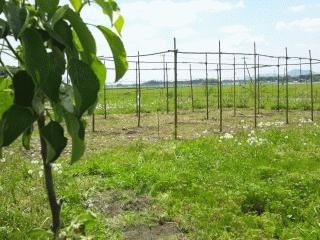 朝6時頃から作業を始めて昼過ぎには完了、明日は強風対策の補強程度で、棚上部の格子状の横棒は暇なときに取付けよう。