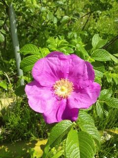 赤花のハマナスが咲きました。花径は10cm程度です。