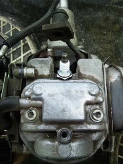 スパークプラグは、CM5HあるいはCMR5Hで、ホームセンターで普通に売っていて、576円でした。スパークプラグは草刈機に添付されていたチップソー交換用工具で簡単に取外せて交換できます。