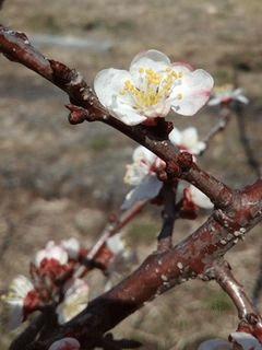 苗を購入して2年4ヵ月、とても成長が早く、花が咲きました。今年は実が食べられるのではと期待しています。そしてこの麦黄準杏(ばくおうじゅんきょう)、芯(種の中身)がすなわち杏仁です。これを粉末にすると杏仁粉になるらしい。