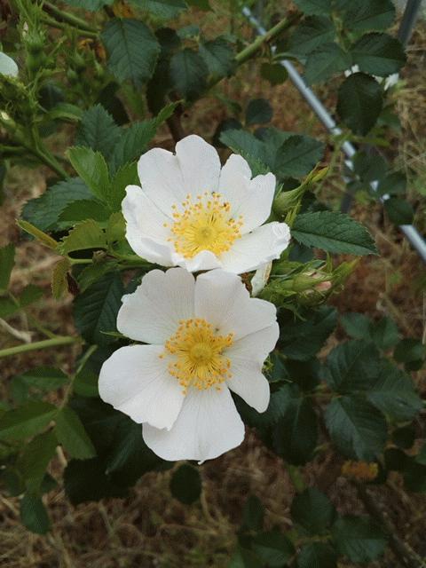 今年もロサ・カニナがほぼ満開です。昨年までフェンスに誘引していたのだけれど、本来ブッシュ状なので、冬に強剪定して樹形を変更しました。剪定しすぎて1本枯れてしまったような・・・でも、棘のないロサ・ムルティフローラに切り替え中なので気にしない事にしよう。