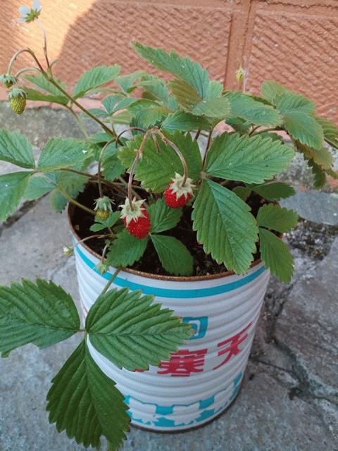 ヤマブドウ缶に引続き、今度はフレーズ・デ・ボア缶を作ってみました。直径16cm程の缶に土をたっぷり入れてあるので、2.5Kg程ある鉢植えになってます。この時期になってようやく大きな実を付けるようになりましたが、通常の苺に比べると遥かに小さいです。しかし、なんといっても香りと味が抜群です!これを日々の生活の中で楽しめるなんて、なんと幸せなのでしょう!ということで、これもヤフオクに出品しちゃお~っと!