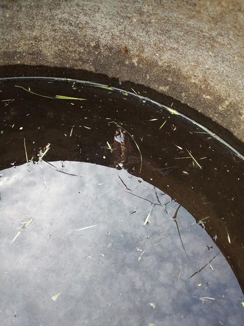 私の農園にはお釜を埋めて作った小さな池が2つある。最初、ここに水道水をいれたのだが、水道水には藻の胞子が濾過されずに含まれていて、日光を浴びて勢いよくアオコが繁殖し、緑色の粉末状の池になってしまった。そこに、いつしかヤマアカガエルが棲むようになり、次第に藻が減少し、底が見える澄んだ池になった。