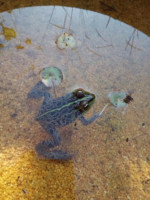 ヤフオクで落札した原種スイレン・メキシカナ(Nymphaea mexicana)を定植しました。スイレンの栽培は初めてなので、ネットで情報を収集しつつ管理していく予定です。池に生息しているカエルには気に入ってもらえたようです。でも、この間まで居たカエルと種類が変わっている。