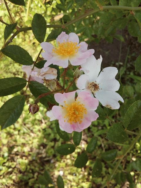 2017年3月に購入したロサ・ムルティフローラも元気よく生長しています。ロサ・カニナはブッシュ状ですが、ムルティフローラはつる性が強いです。棘もほとんどなく、薔薇の台木としても使われる便利な品種です。もちろん、原種系なのでローズヒップも採れます。