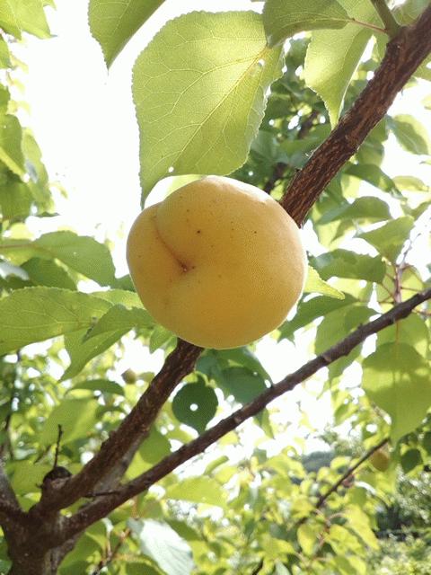 アンズ・新潟大実です。樹には半分ほどかじられた実もあるので、もう美味しく食べることができそうです。