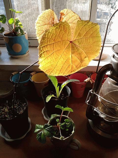 朝方の気温が-3℃まで冷え込みましたが、ヤマブドウ・紫紺のしずくのこの1個体は落葉せずに年を越しました。アーティチョークやフレーズ・デ・ボワも頑張っています。