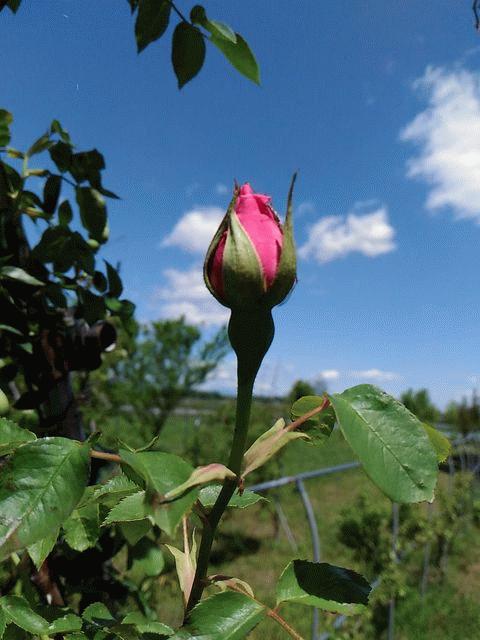 一足先にバラ科のスモモ、プルーンが咲き終わり、新緑の青葉が溢れるこの5月、農園を彩るのはスパニュッシュ・ビューティーです。あと1週間もすると、農園・東エントランスのアーチはピンクの大輪で芳香の強い、このバラで彩られます。