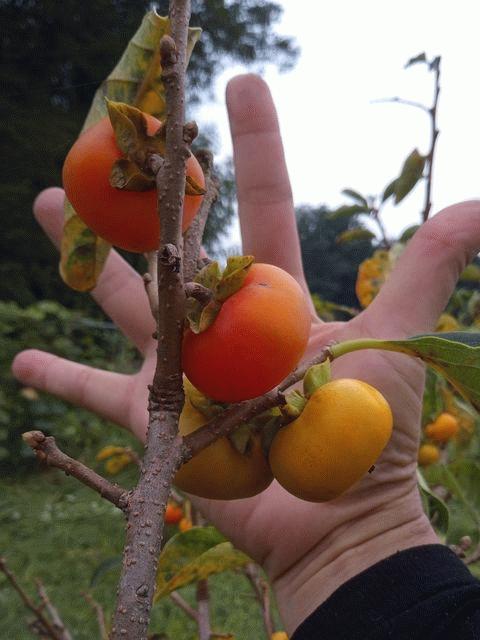 超ミニチュアサイズの渋柿 さど乙女という品種の渋柿です。今年初めて実を付けました。他の柿はまだ蒼いので、かなり早生の品種です。オレンジ色の柿をそのまま食べてみたら、やはり渋かった。収穫後の追熟が早いので、収穫したらすぐに渋抜きする必要がありそうです。