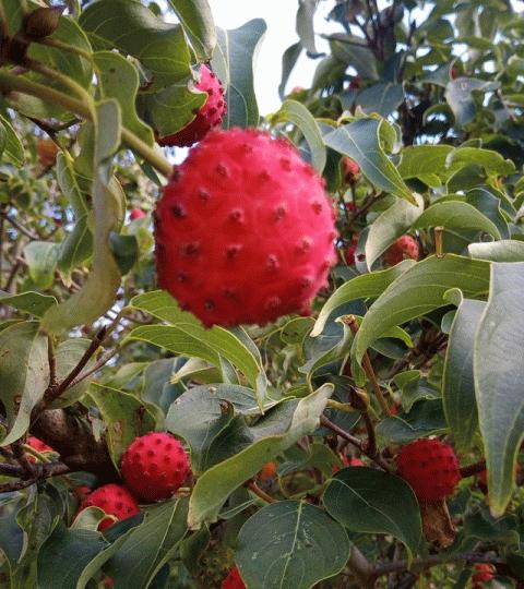 今年は楽しくヤマボウシ狩り 見た目ライチに似ていますが、期待して食べるとガッカリなのがヤマボウシです。農地を取得して8年が経過し、仲間も増えて、ヤマボウシ狩りです。収穫したヤマボウシはホワイトリカーなどに漬け込むときれいな色のお酒になります。
