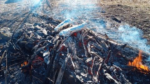 剪定枝を単に焼却するのでは芸がないので、焼き芋を作りました。火の勢いが落ち着いて炭火状態になったところで芋を投下します。そのまま焼くと丸焦げになるので、アルミ箔で包んで焼きます。木の枝や落ち葉で焼いた芋は、すごく糖度が上がり、甘くてとても美味しいです。
