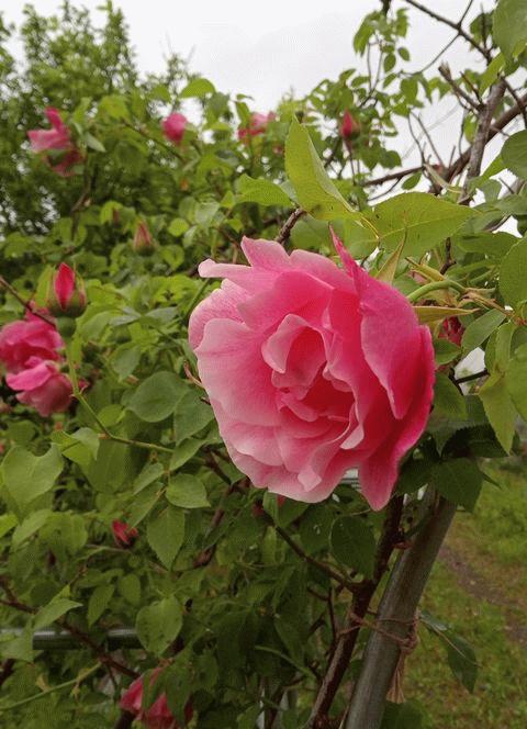 幻燈農場東側エントランスのスパニッシュビューティーが強い芳香を放っています。一季咲きの薔薇なのでエントランスに相応しいか思案中です。朝顔であれば、晩秋まで咲いているものもあるので、どうしたものか・・・