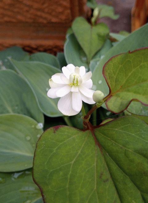 ドクダミと言えば、普通は一重の白い花を咲かせますが、庭に植えてあるドクダミは八重咲です。ギボウシ・ハルシオンと縄張り争いをしています。