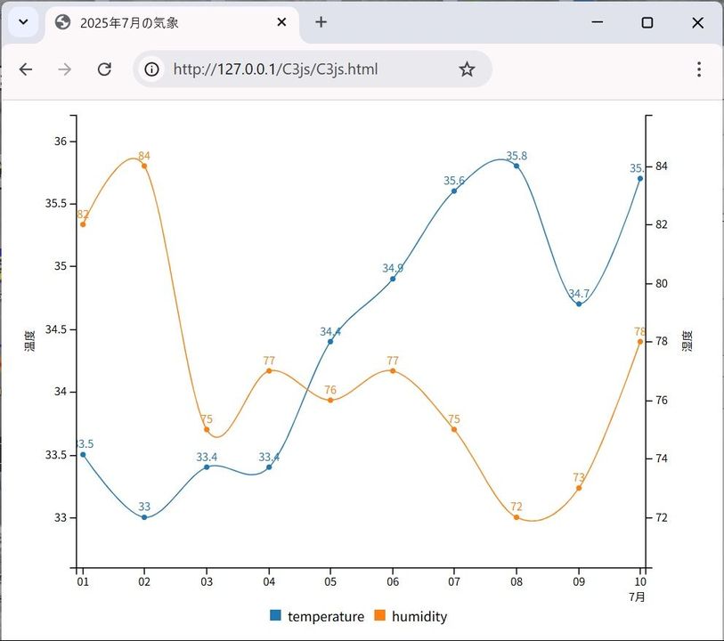 ['temperature', 33.5, 33.0, 33.4, 33.4, 34.4, 34.9, 35.6, 35.8, 34.7,35.7],