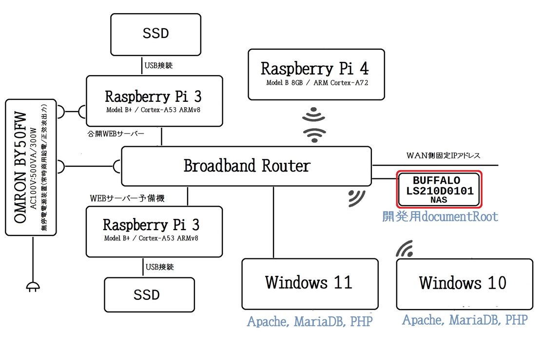 各Windowsパソコンに、Apache, MariaDB, PHPなどをインストールして編集していました。