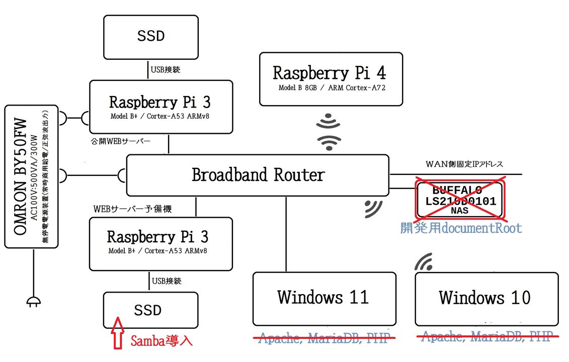 そこで、非公開のWEBサーバ予備機SSDに構築したUbuntuにSambaを導入することにしました。