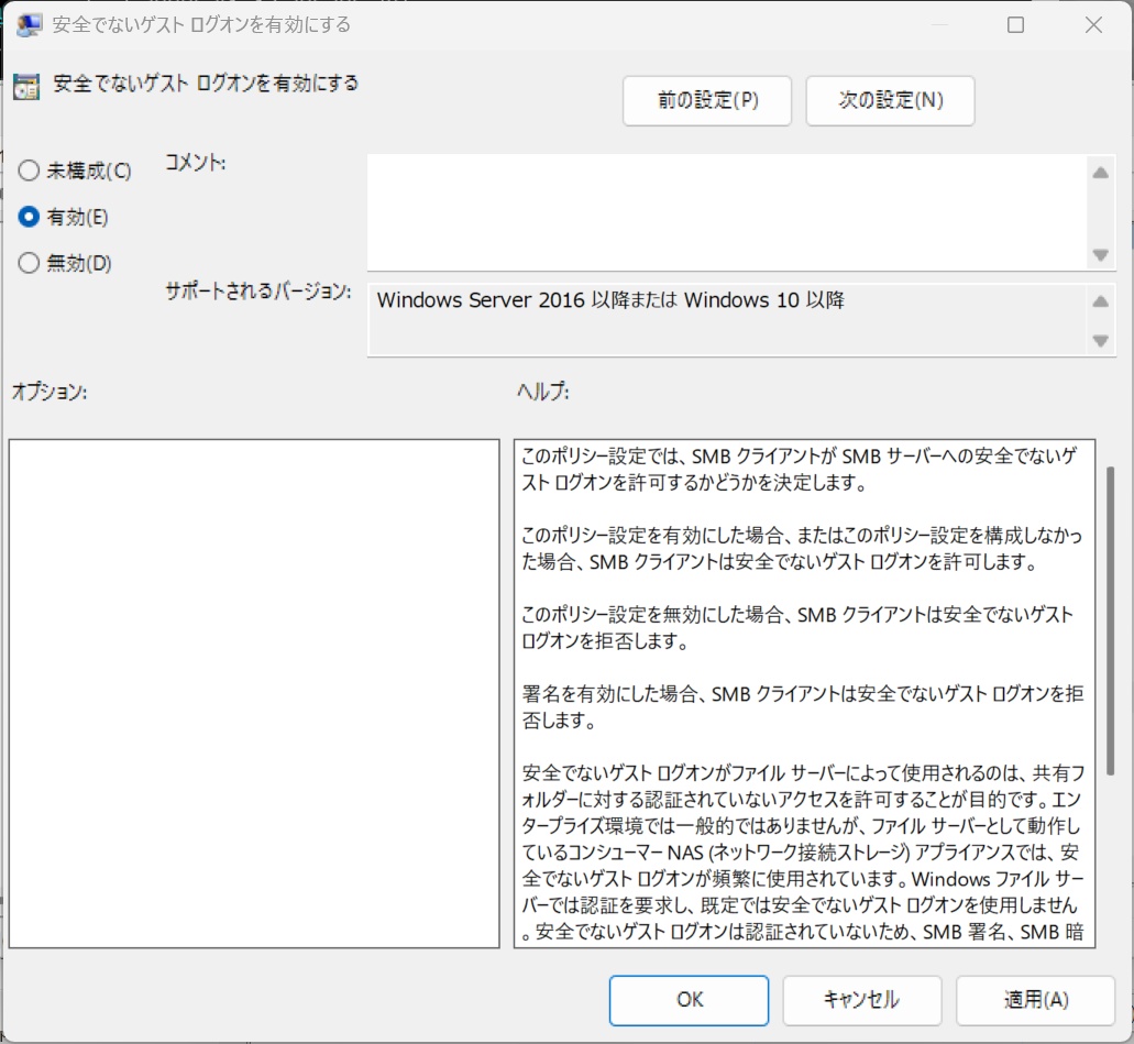 「安全でないゲストログオンを有効にする」をダブルクリックします