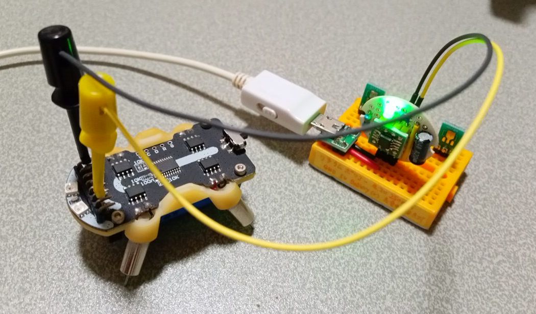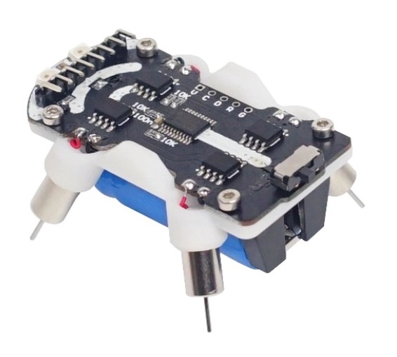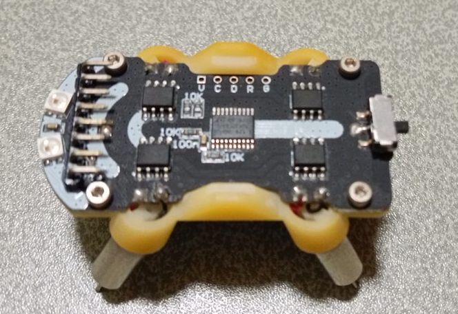 ベース基板には、4つのモーターとLEDを制御するSTM32F030F4マイクロコントローラが搭載されており、