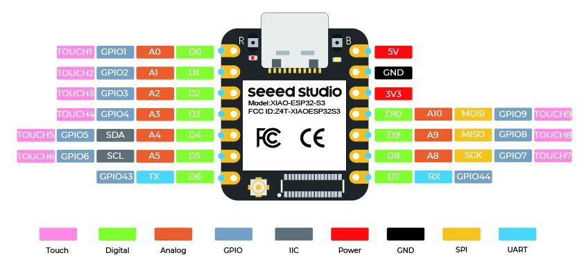基板にはM5StickCに合わせて8ピンヘッダーがあり、右側のピンがGNDです。