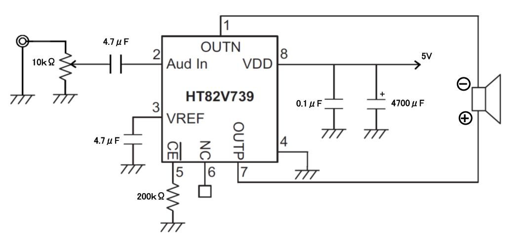 低電圧オーディオアンプIC HT82V739を使って、スピーカーを組み立てました。
