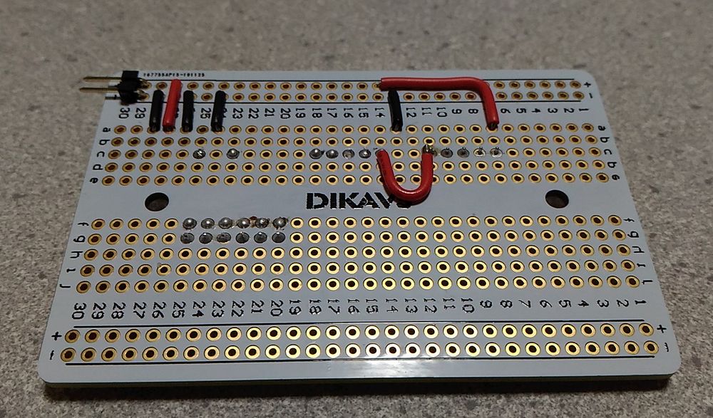 両面スルーホール・ブレッドボード仕様のプリント基板を使って配線を纏めました。