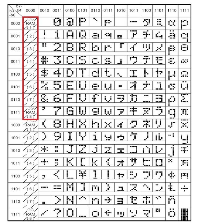 赤の太線にあるように、ユーザ独自のビットマップキャラクタを設定することができます